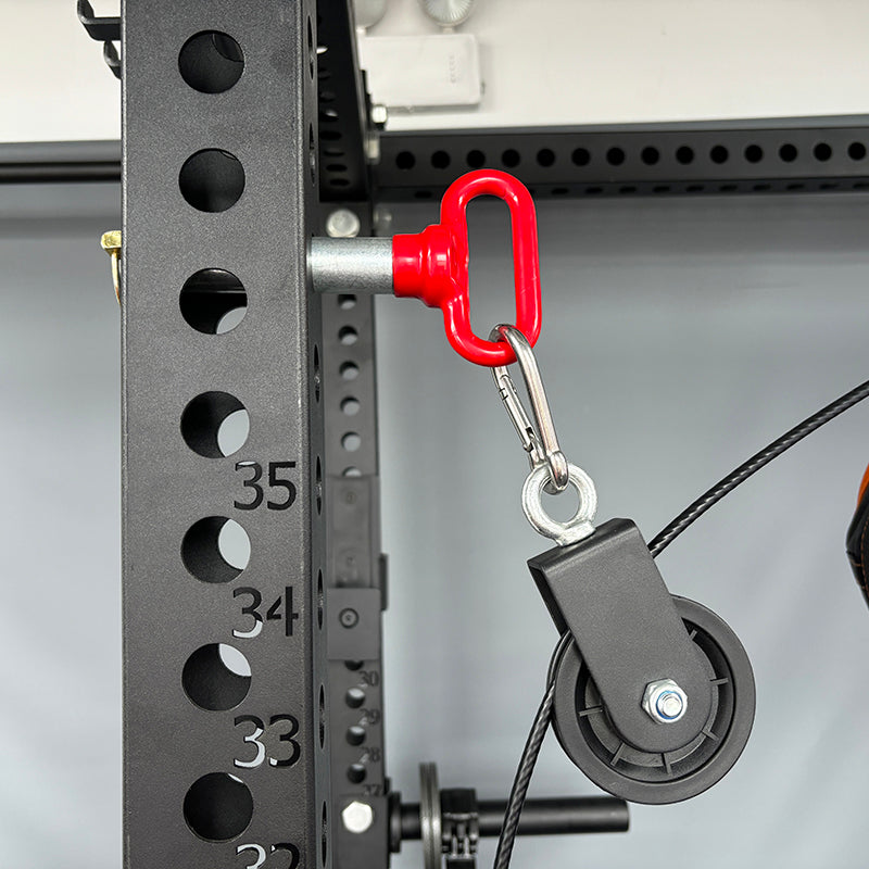 The T-handle design makes installation fast and easy — simply insert, twist, and lock. Its bright red grip ensures visibility and a firm hold, while the included locking clip guarantees your attachments stay secure during any workout.
